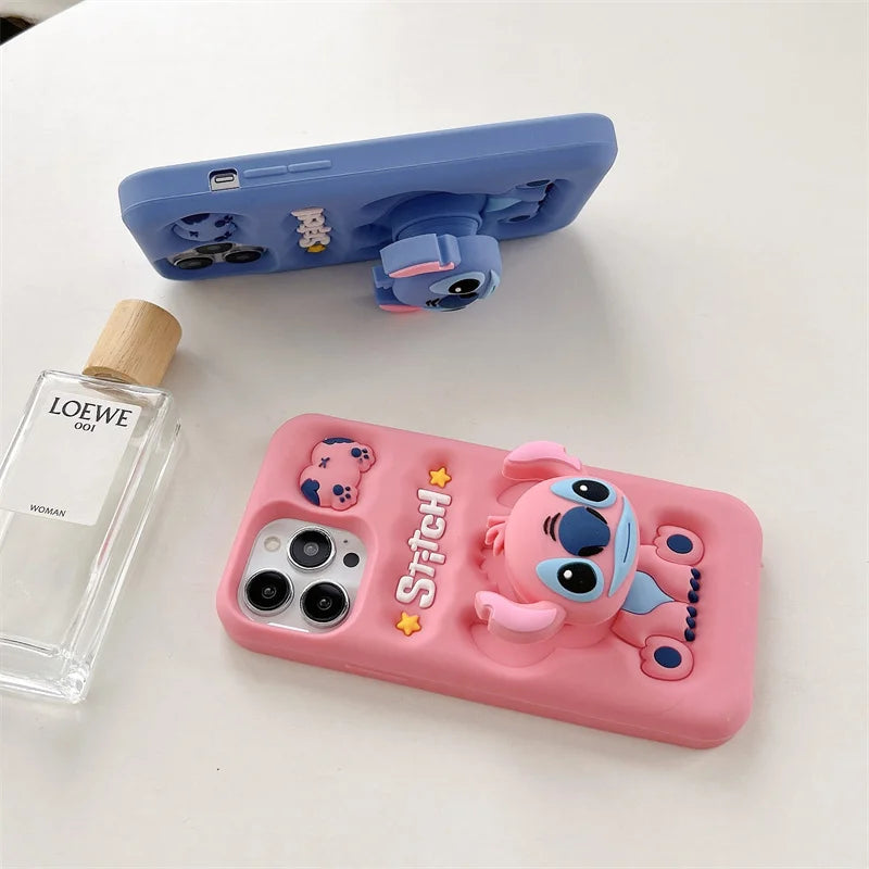 1 × 3D Cartoon Stitch Phone Case with Pop Holder for iPhone