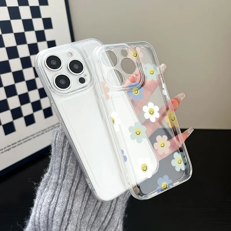 1 × Colorful Flowers Clear iPhone Case