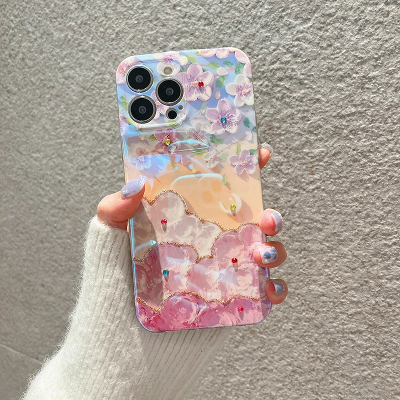 1 × Glitter Floral Phone Case for iPhone