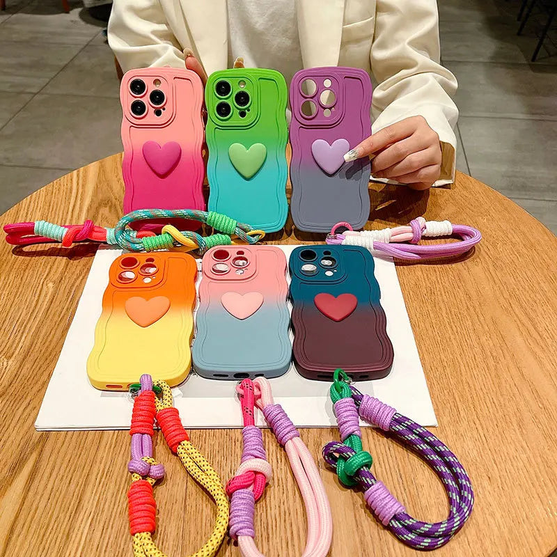 1 × Gradient Wave Love iPhone Case with Wrist Strap