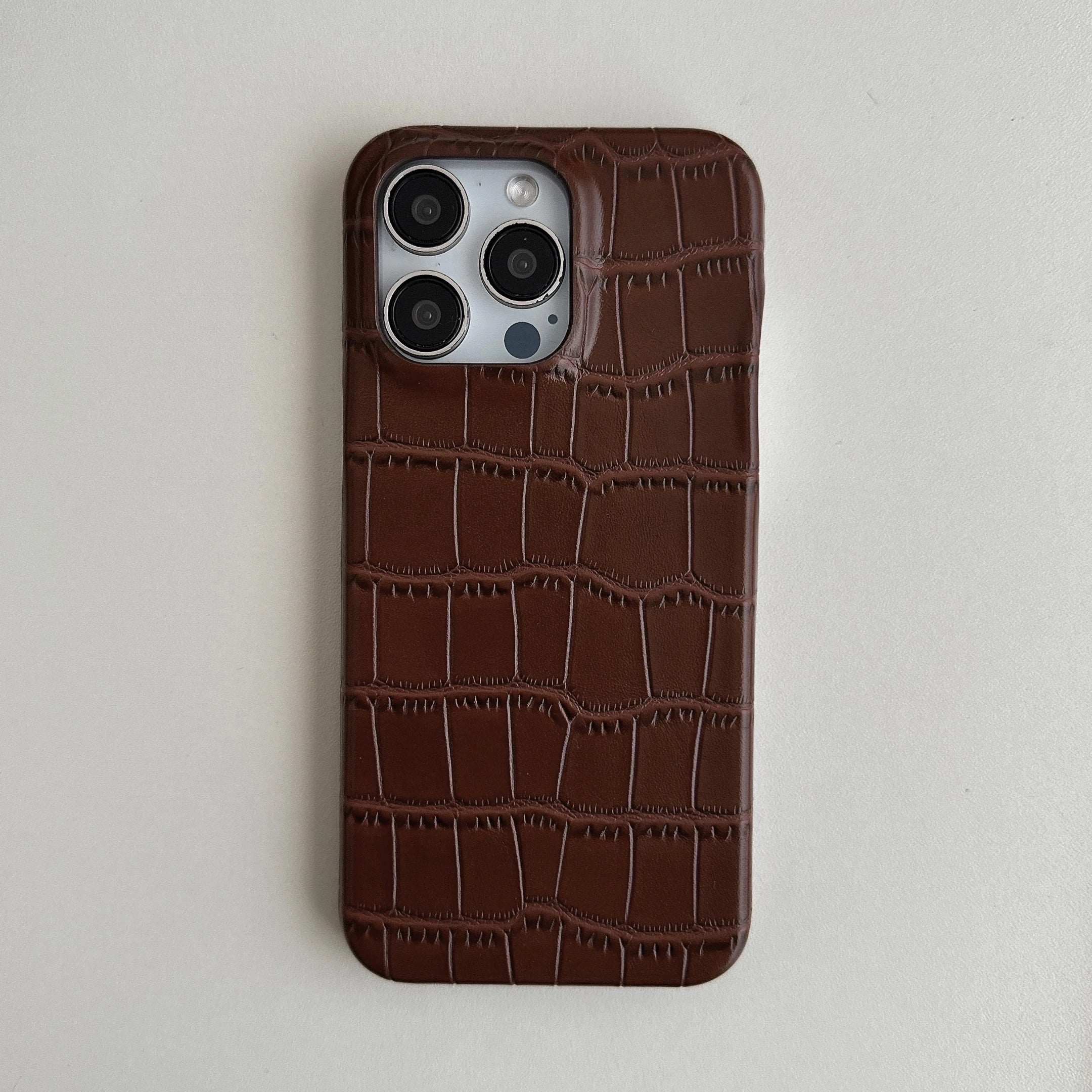 1 × Grey & Brown Alligator Texture Phone Case for iPhone