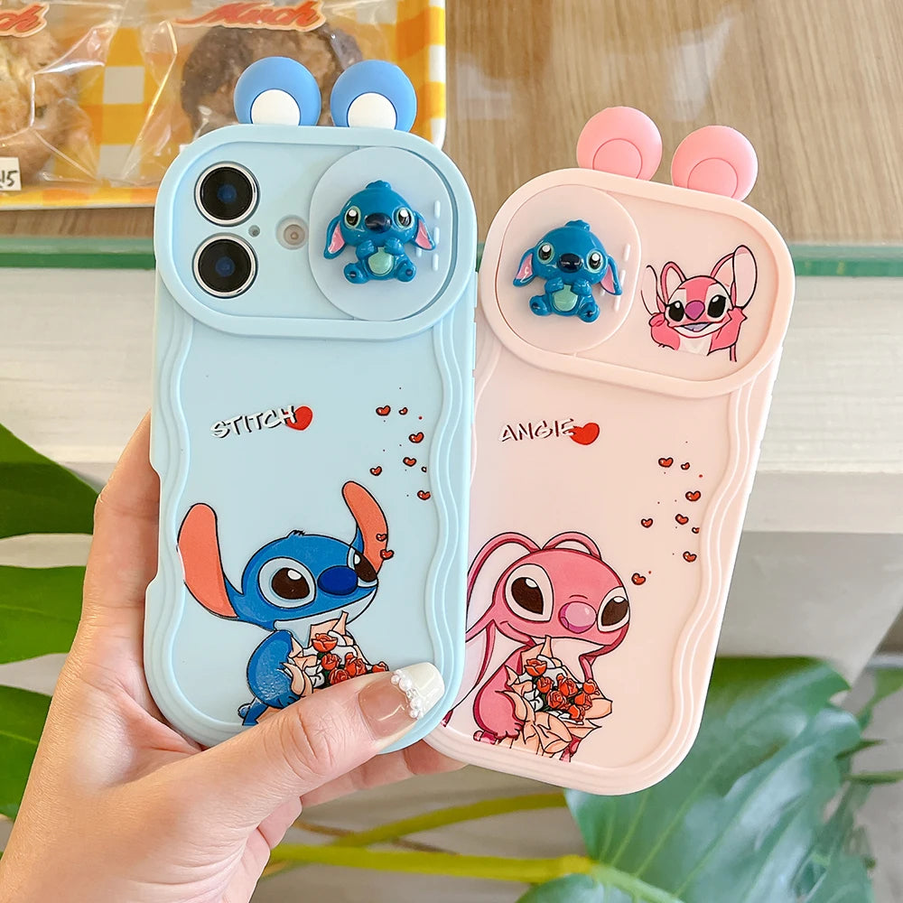 1 × Minnie Mickey Angel Stitch Ears Sliding Camera Phone Case