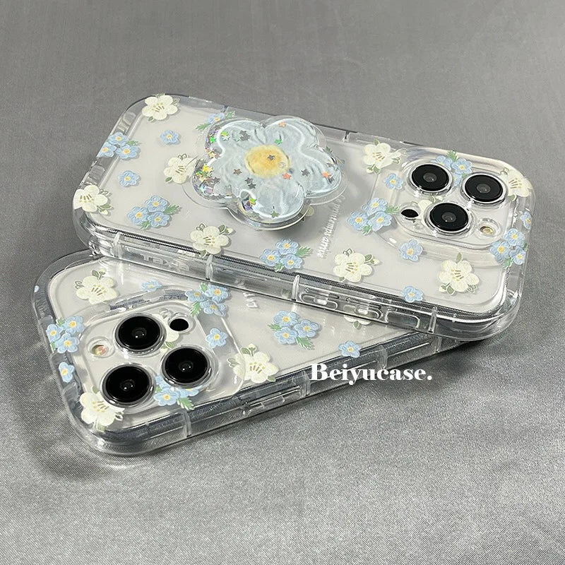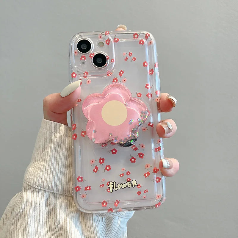1 × Quicksand Flower TPU Phone Case with Grip Holder